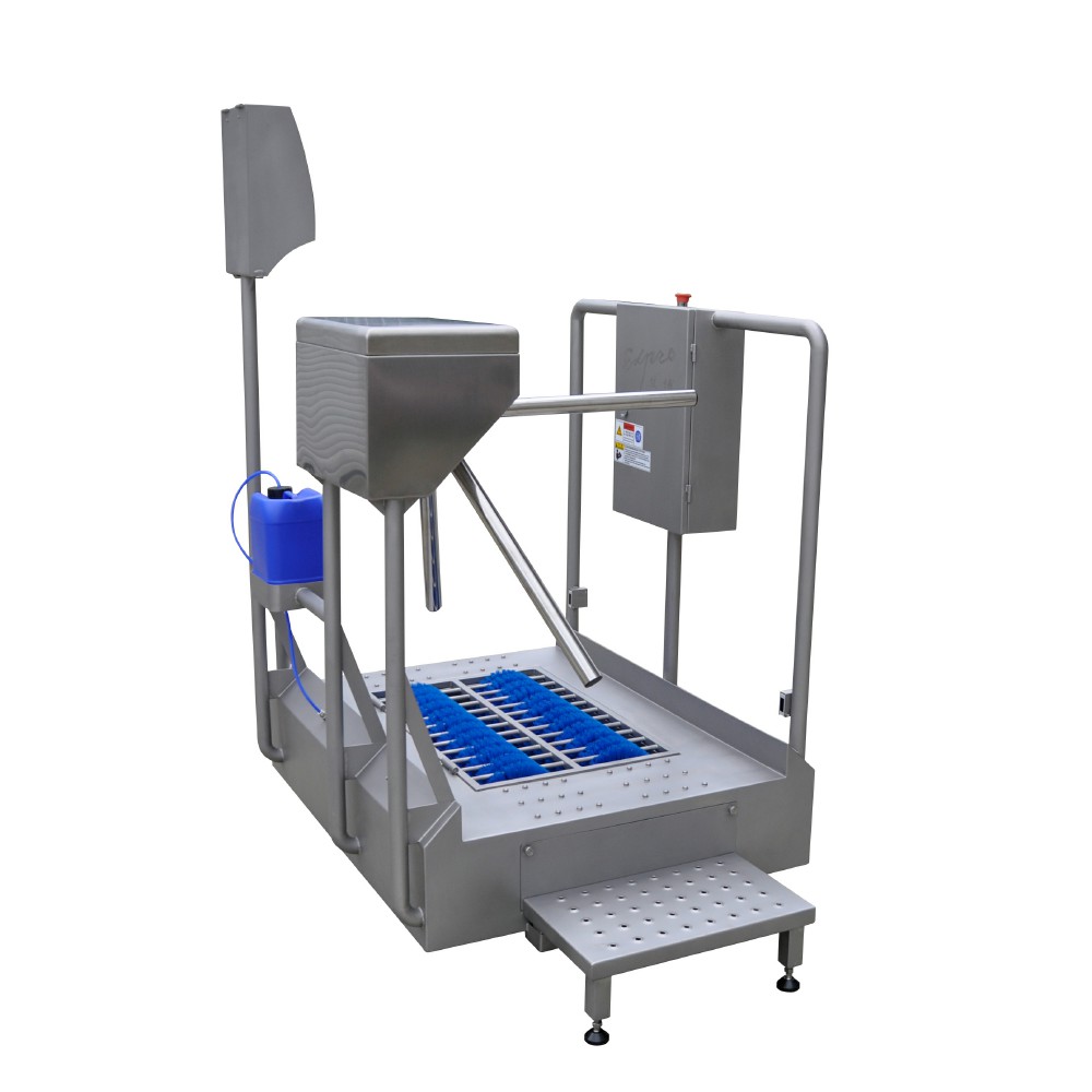 整機(jī)由優(yōu)質(zhì)不銹鋼SUS304制造。多功能洗靴器采用通道式組合結(jié)構(gòu),該機(jī)是集洗靴、手消毒和三輥閘門禁系統(tǒng)于一體的多功能清洗設(shè)備。當(dāng)人員進(jìn)入該機(jī)時(shí),光電感應(yīng)器得到信號,洗靴毛刷開始運(yùn)轉(zhuǎn),將水和洗滌噴射到靴底進(jìn)行清洗。只有當(dāng)人員通過手消毒后三輥閘才能打開,允許人員通過。